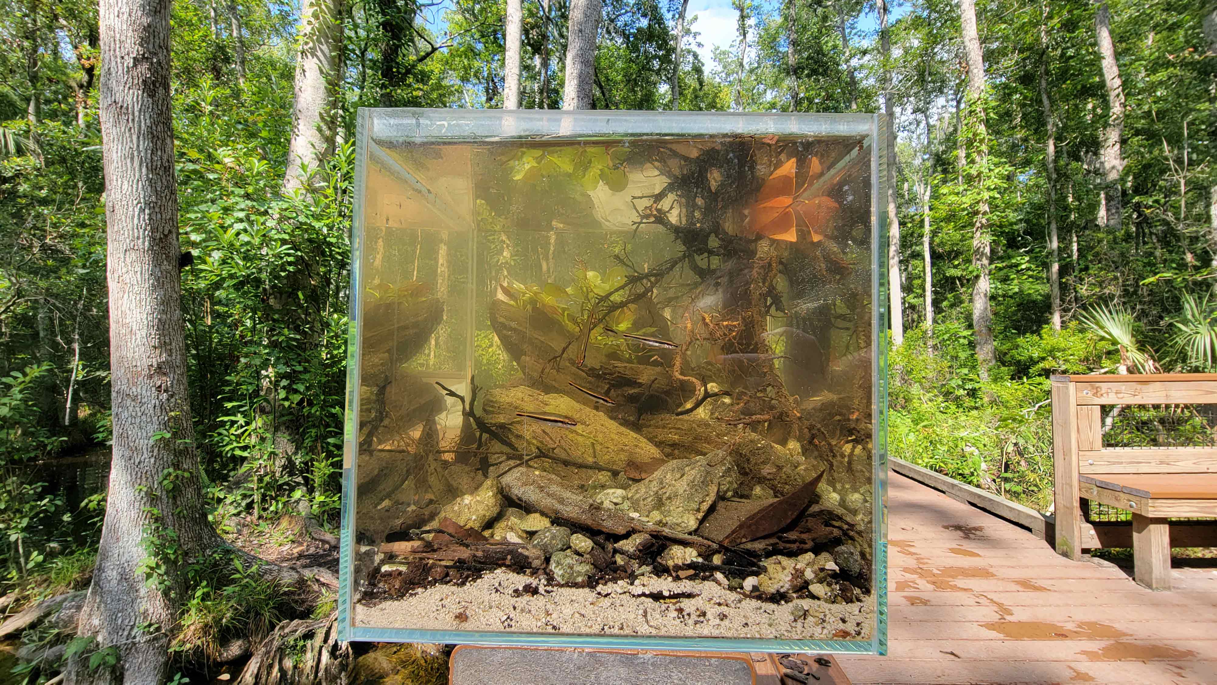 Назва: Cube Of Perfect Imperfections Координати: 28.6332° N, 82.5844° W Короткий опис. This biotope in ispired by the beauty of Buford Springs FL a diversity of caves to cypress swamp Crystal clear caves to tannin flooded area Тварини та рослини, виявлені та використані в роботі: - Pteronotropis harperi ( Redeye Chub ), - Ludwigia repens Хімічні параметри води: - pH - 7.0 - GH - 8 - KH - 5 - TDS - 118 - No2 - 0 - No3 - 0 - Ammonia - 0.25 - T°C - 22.2°C Використання субстрату, іншого природного декору: Limestone Rock Misc. wood,twigs and leaves. Розміри акваріума: 20 cм д * 20 cм г * 20 cм в.